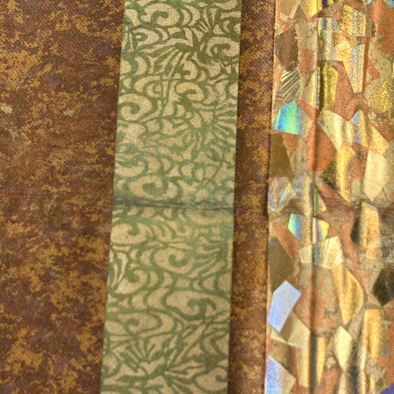 角度によって巧みに表情を変え反射する箔加工を得意とする堀省平の作品でございます。 セミフォーマルでお使いいただける袋帯でございます。 見る人に重たい印象を感じさせない女性ならではの、気品豊かな一品です。 締め跡がございます。 手先前柄間に生地のヨレ、締め跡沿いに薄汚れ、締め跡沿いに金彩の剥がれや箔の傷みがございます。 裏地所々に生地のヨレがございます。 リユース品としては良い状態で、まだまだご活用頂けると思われます。 ※なお、厳しく商品の状態確認を行っておりますが、記載の汚れ以外にも見落とし箇所がある可能性がある旨ご了承いただけますと幸いです。 沢山の商品の中からご覧いただき誠にありがとうございます。 【PR2】