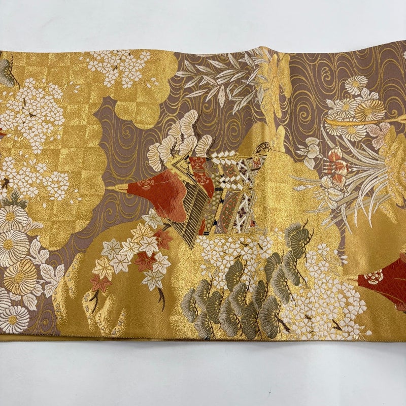 おめでたい席に相応しい意匠の袋帯でございます。 格式高いお席にもお使いいただけますので、お見逃しのないようお願いいたします。 締め跡がございます。 リユース品としては目立った染み傷なく、状態の良いお品でございます。 ※なお、厳しく商品の状態確認を行っておりますが、記載の汚れ以外にも見落とし箇所がある可能性がある旨ご了承いただけますと幸いです。 沢山の商品の中からご覧いただき誠にありがとうございます。 【PR2】