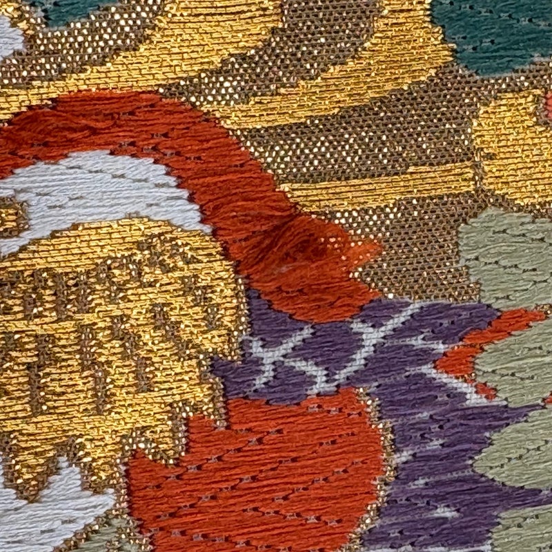 セミフォーマルでお使いいただける袋帯でございます。 見る人に重たい印象を感じさせない女性ならではの、気品豊かな一品です。 締め跡がございます。 表地所々に刺繍糸のゆるみがございます。 裏地所々にシミがございます。 リユース品としては目立った染み傷なく、状態の良いお品でございます。 ※なお、厳しく商品の状態確認を行っておりますが、記載の汚れ以外にも見落とし箇所がある可能性がある旨ご了承いただけますと幸いです。 沢山の商品の中からご覧いただき誠にありがとうございます。 【PR2】