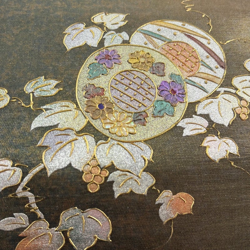 セミフォーマルでお使いいただける袋帯でございます。 見る人に重たい印象を感じさせない女性ならではの、気品豊かな一品です。 帯芯が入っておりません。 締め跡がございます。 手先前柄間にシミ、お太鼓所々と前柄所々に金銀彩の剥がれ、お太鼓所々と前柄所々に金銀彩の変色がございます。 裏地所々にシミがございます。 リユース品としては良い状態で、まだまだご活用頂けると思われます。 ※なお、厳しく商品の状態確認を行っておりますが、記載の汚れ以外にも見落とし箇所がある可能性がある旨ご了承いただけますと幸いです。 沢山の商品の中からご覧いただき誠にありがとうございます。 【PR2】