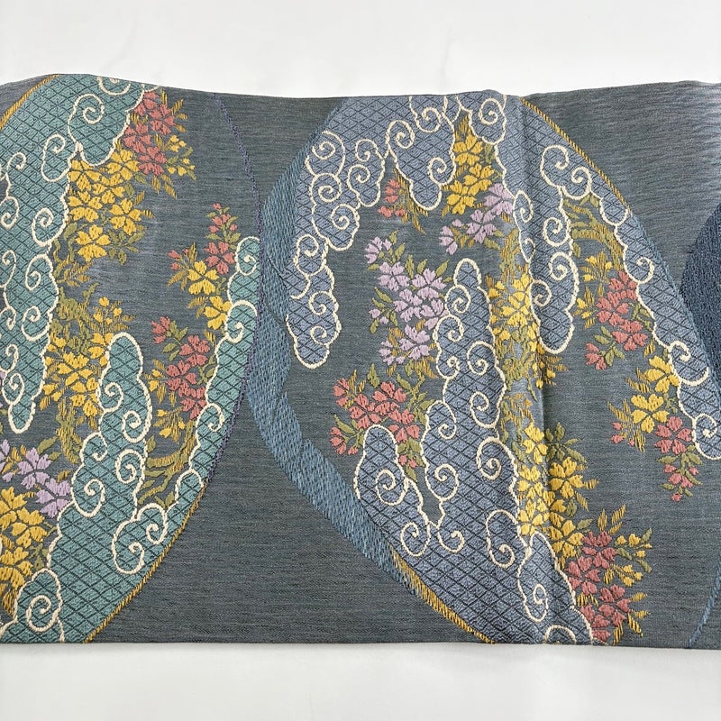 【袋帯】 灰色系 青灰色 秀品 A 帯丈436cm以上 7990-9980 美品 二万以下