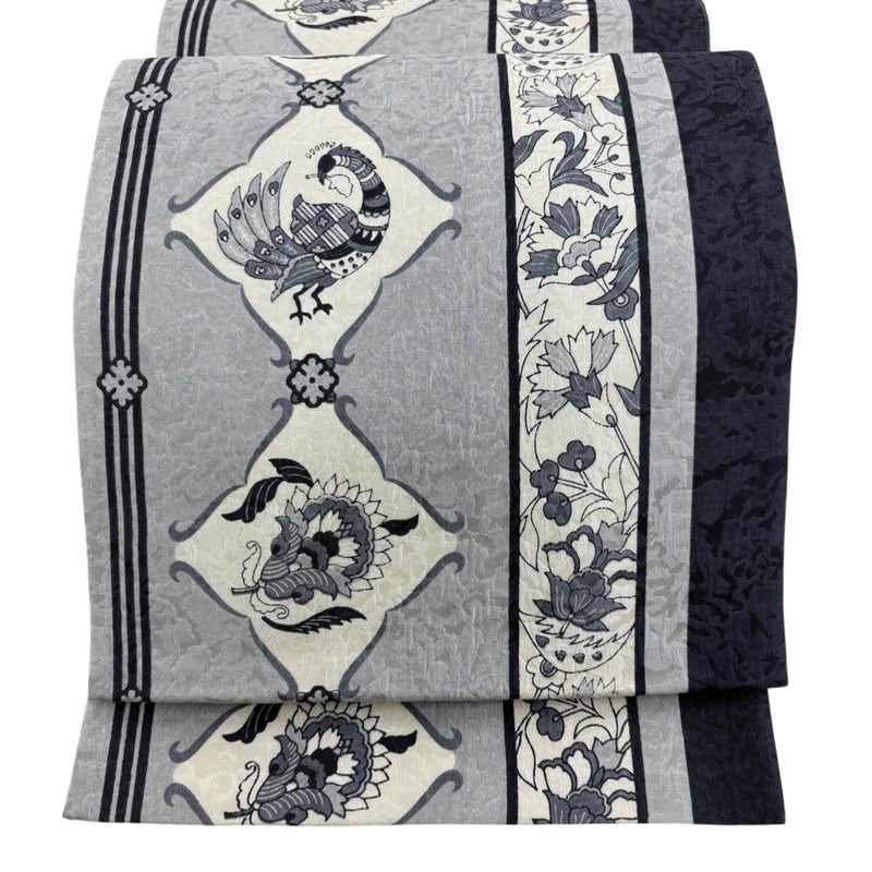 【袋帯】 灰色系 青灰色 秀品 A 帯丈436cm以上 7990-9980 美品 二万以下