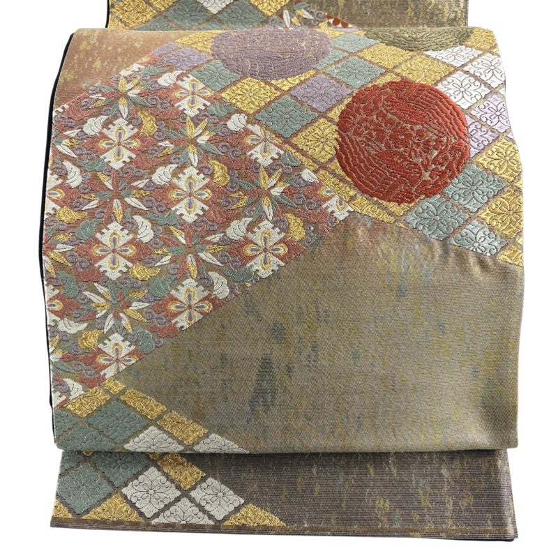 【袋帯】 灰色系 灰緑 秀品 B 帯丈426cm~435cm 4000-7980 二万以下