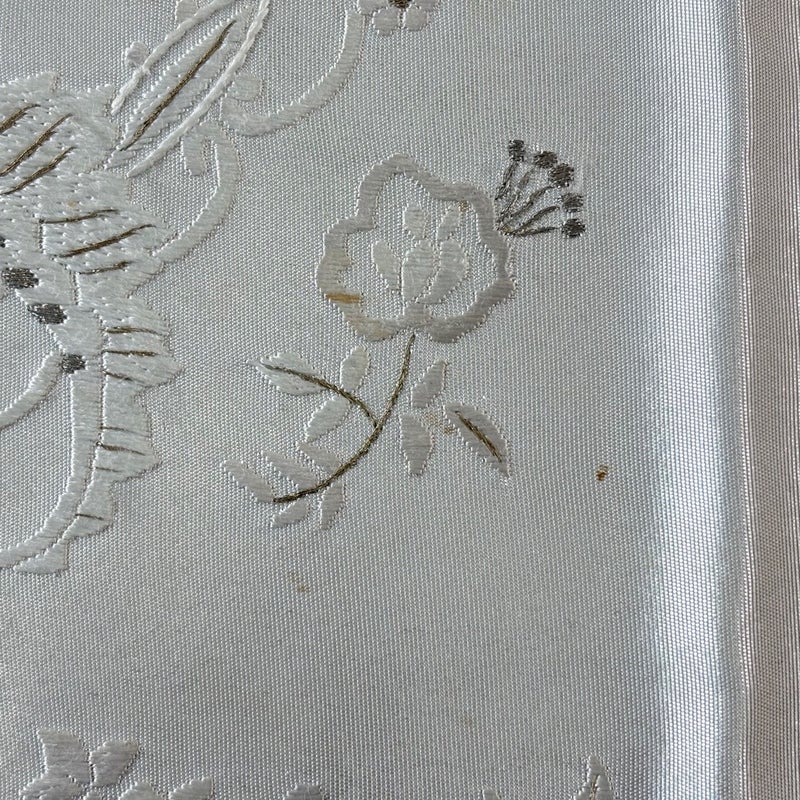 おめでたい席に相応しい意匠の袋帯でございます。 格式高いお席にもお使いいただけますので、お見逃しのないようお願いいたします。 締め跡がございます。 前柄所々とお太鼓垂先間と前柄お太鼓間と垂先など表地所々にシミ、締め跡沿いに汚れ、表地所々に金銀糸の変色がございます。 裏地所々に線シミがございます。 リユース品としては良い状態で、まだまだご活用頂けると思われます。 ※なお、厳しく商品の状態確認を行っておりますが、記載の汚れ以外にも見落とし箇所がある可能性がある旨ご了承いただけますと幸いです。 沢山の商品の中からご覧いただき誠にありがとうございます。