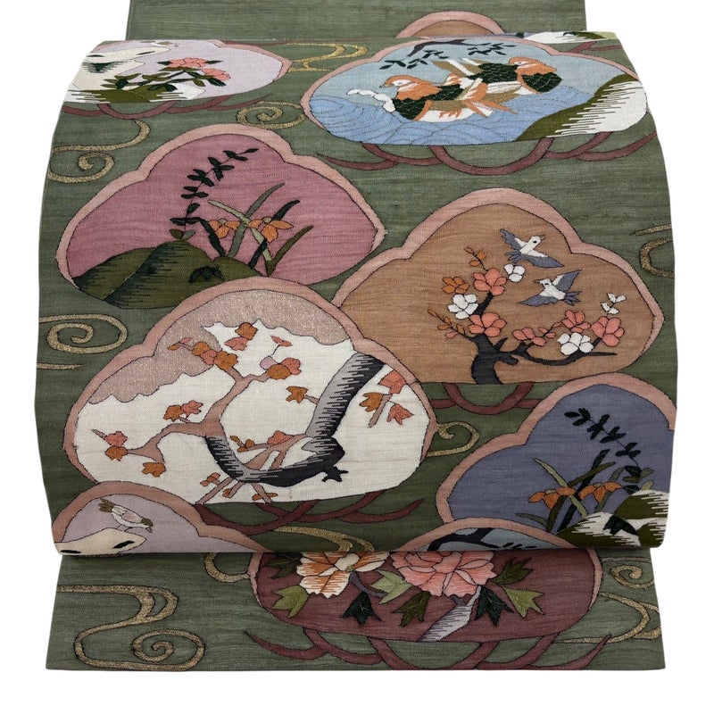【袋帯】 灰色系 灰緑 逸品 B 帯丈436cm以上 30000- 五万以下