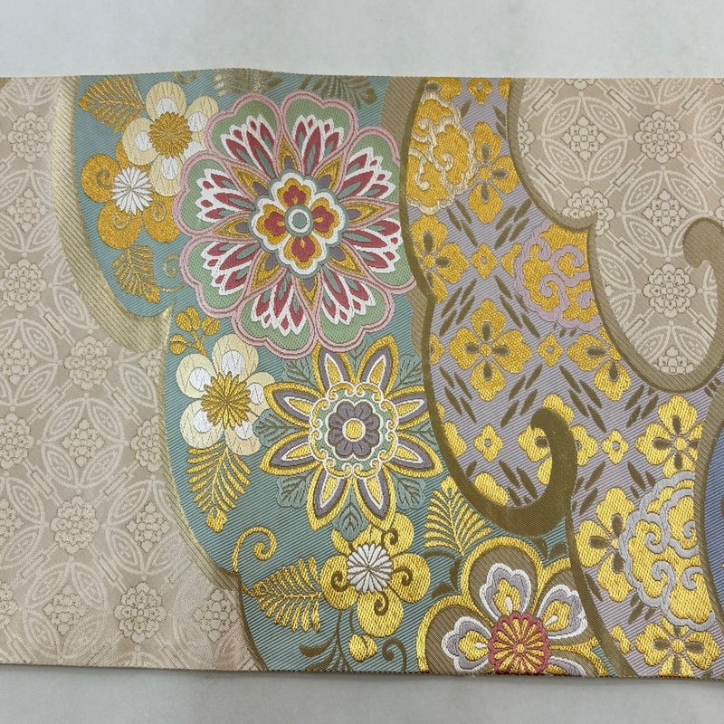 【袋帯】 白系 ベージュ 秀品 A 帯丈436cm以上 7990-9980 美品 二万以下