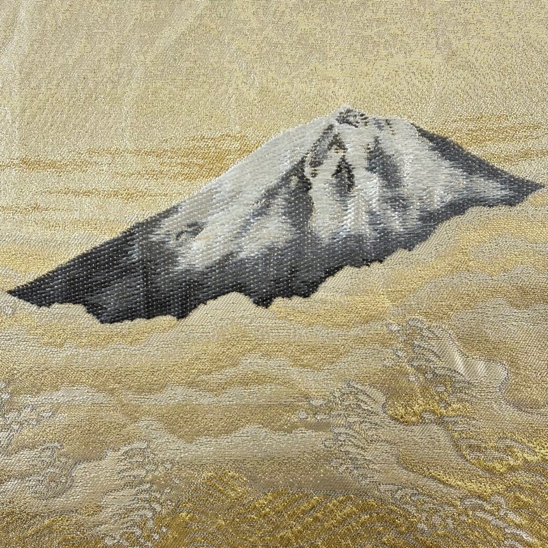 近代日本画の巨匠・横山大観の画が精密に再現された作品でございます。 セミフォーマルでお使いいただける袋帯でございます。 見る人に重たい印象を感じさせない女性ならではの、気品豊かな一品です。 締め跡がございます。 お太鼓所々にシワがございます。 リユース品としては良い状態で、まだまだご活用頂けると思われます。 ※なお、厳しく商品の状態確認を行っておりますが、記載の汚れ以外にも見落とし箇所がある可能性がある旨ご了承いただけますと幸いです。 沢山の商品の中からご覧いただき誠にありがとうございます。