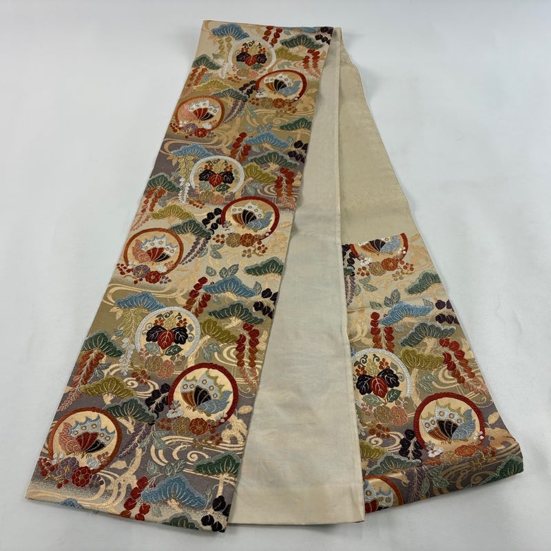 【袋帯】 白系 ベージュ 秀品 B 帯丈436cm以上 4000-7980 二万以下