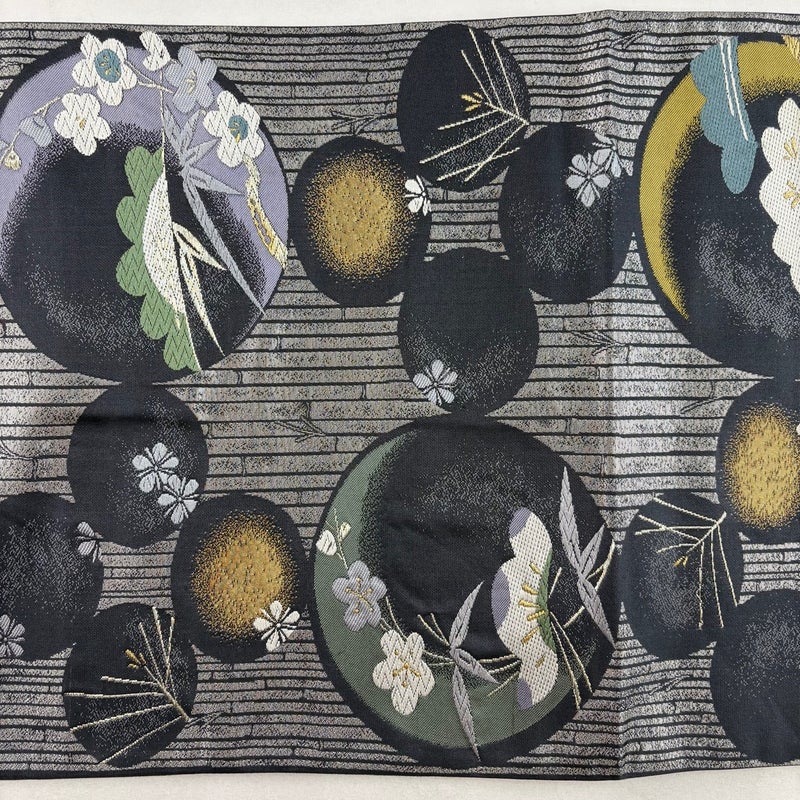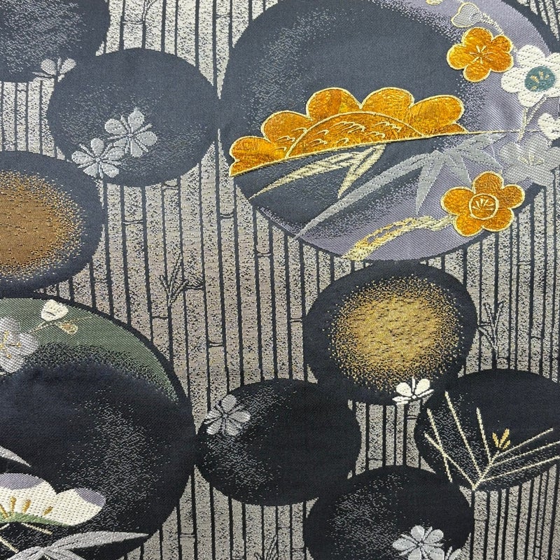 セミフォーマルでお使いいただける袋帯でございます。 見る人に重たい印象を感じさせない女性ならではの、気品豊かな一品です。 手先前柄間に小さな薄いシミ、表地所々に若干の刺繍糸のゆるみ、お太鼓柄部分に金彩の変色がございます。 裏地所々にシミがございます。 リユース品としては良い状態で、まだまだご活用頂けると思われます。 ※なお、厳しく商品の状態確認を行っておりますが、記載の汚れ以外にも見落とし箇所がある可能性がある旨ご了承いただけますと幸いです。 沢山の商品の中からご覧いただき誠にありがとうございます。