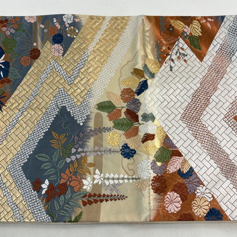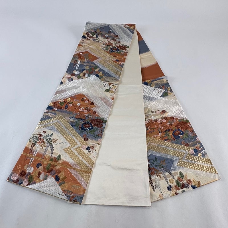 【袋帯】 白系 ベージュ 秀品 A 帯丈426cm~435cm 7990-9980 美品 二万以下