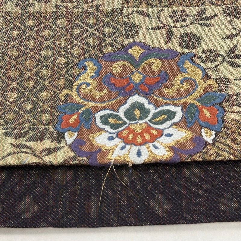 おめでたい席に相応しい意匠の袋帯でございます。 格式高いお席にもお使いいただけますので、お見逃しのないようお願いいたします。 締め跡がございます。 手先に柄のほつれがございます。 ※商品の仕立て上、垂先の織り出し口から裏地がはみ出ております。 リユース品としては良い状態で、まだまだご活用頂けると思われます。 ※なお、厳しく商品の状態確認を行っておりますが、記載の汚れ以外にも見落とし箇所がある可能性がある旨ご了承いただけますと幸いです。 沢山の商品の中からご覧いただき誠にありがとうございます。