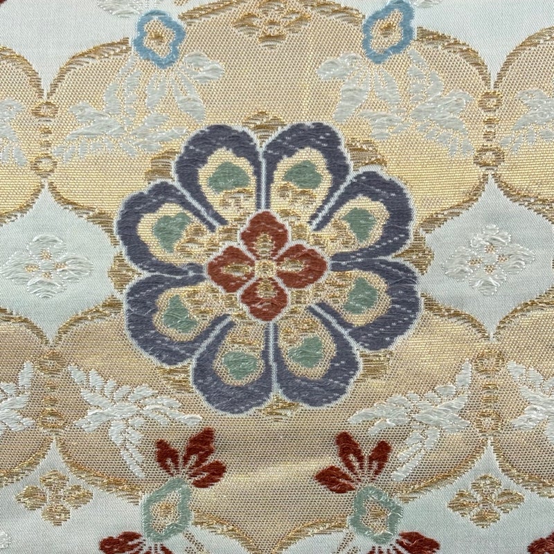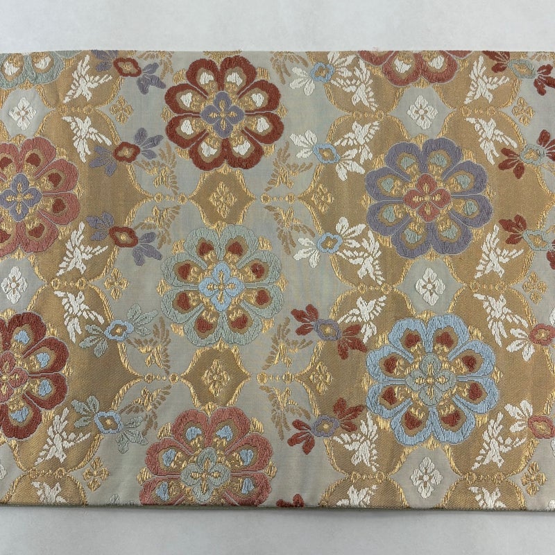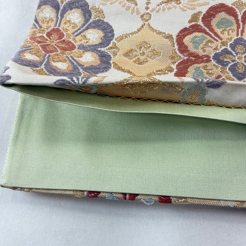 セミフォーマルでお使いいただける袋帯でございます。 見る人に重たい印象を感じさせない女性ならではの、気品豊かな一品です。 締め跡がございます。 表地所々にヤケ、中無地所々に小さなシミ、表地所々に唐織の糸ゆるみや糸ほつれがございます。 裏地所々にヤケがございます。 リユース品としては良い状態で、まだまだご活用頂けると思われます。 ※なお、厳しく商品の状態確認を行っておりますが、記載の汚れ以外にも見落とし箇所がある可能性がある旨ご了承いただけますと幸いです。 沢山の商品の中からご覧いただき誠にありがとうございます。