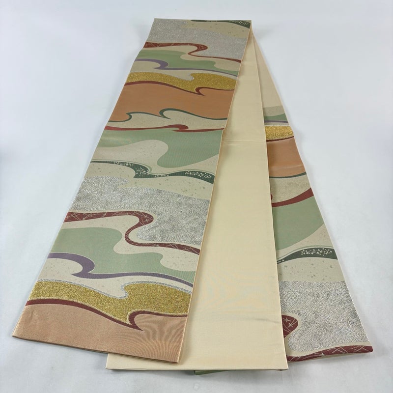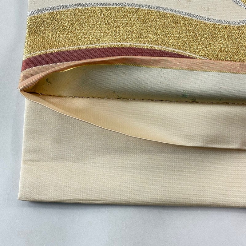 【袋帯】 白系 ベージュ 秀品 A 帯丈436cm以上 7990-9980 美品 二万以下