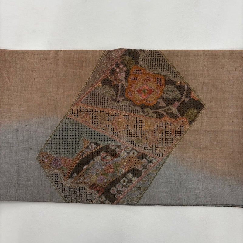 セミフォーマルでお使いいただける袋帯でございます。 見る人に重たい印象を感じさせない女性ならではの、気品豊かな一品です。 締め跡がございます。 リユース品としては目立った染み傷なく、状態の良いお品でございます。 ※なお、厳しく商品の状態確認を行っておりますが、記載の汚れ以外にも見落とし箇所がある可能性がある旨ご了承いただけますと幸いです。 沢山の商品の中からご覧いただき誠にありがとうございます。