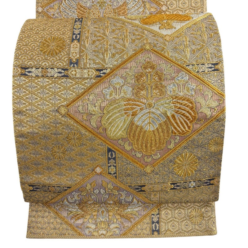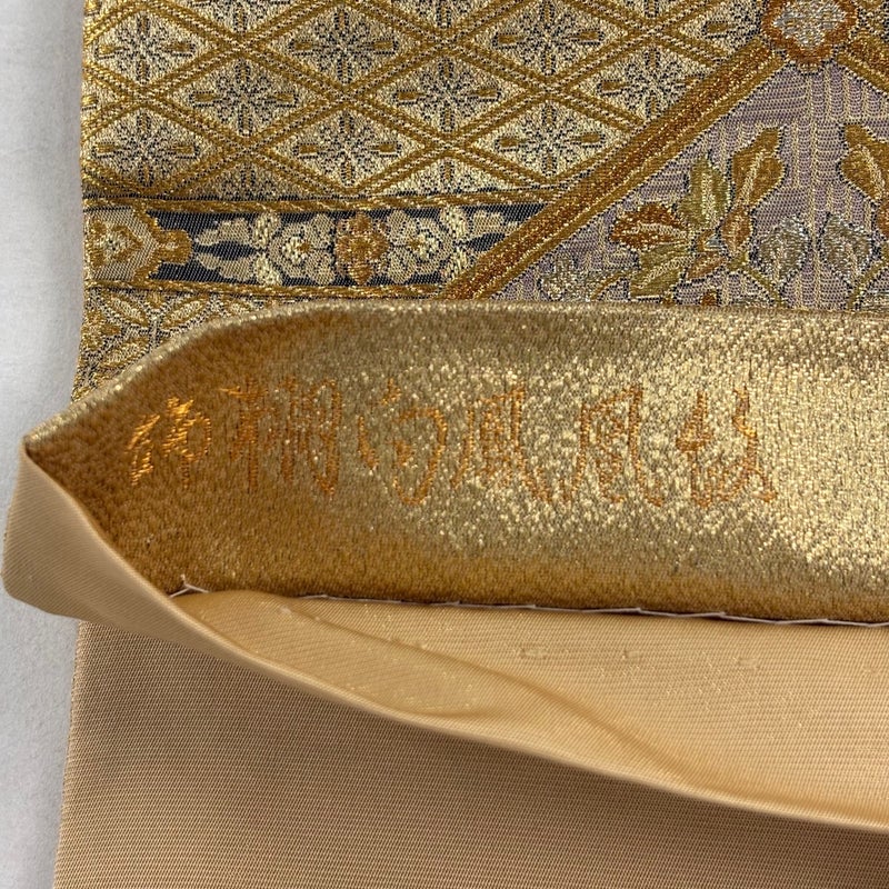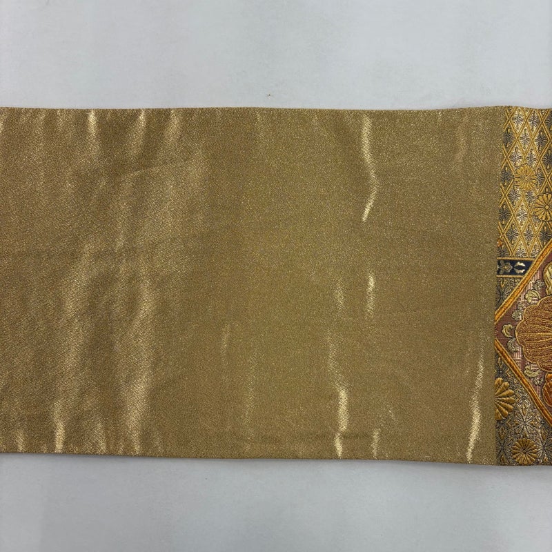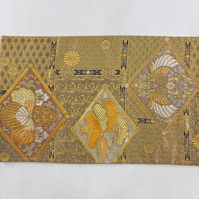 【美品】 袋帯 秀品 桐唐草 鳳凰 金銀糸 箔 金色 六通 正絹