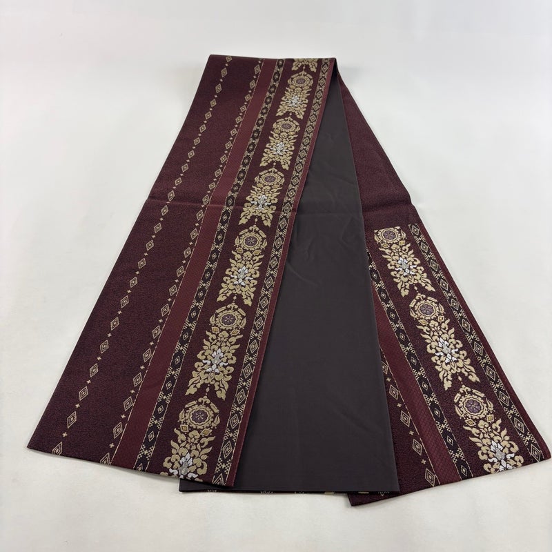 セミフォーマルでお使いいただける袋帯でございます。 見る人に重たい印象を感じさせない女性ならではの、気品豊かな一品です。 締め跡がございます。 中無地に薄いシミがございます。 リユース品としては目立った染み傷なく、状態の良いお品でございます。 ※なお、厳しく商品の状態確認を行っておりますが、記載の汚れ以外にも見落とし箇所がある可能性がある旨ご了承いただけますと幸いです。 沢山の商品の中からご覧いただき誠にありがとうございます。