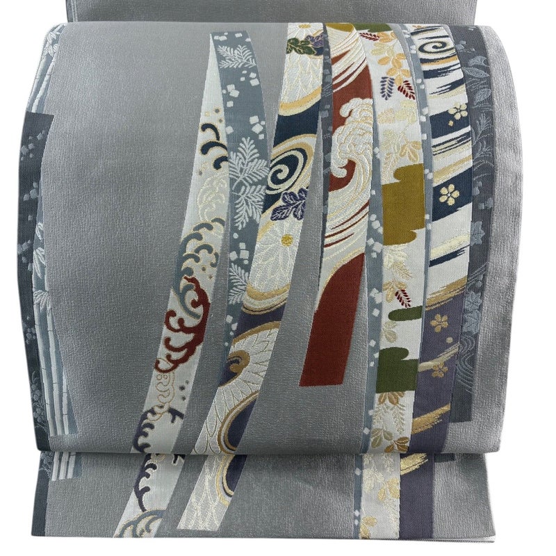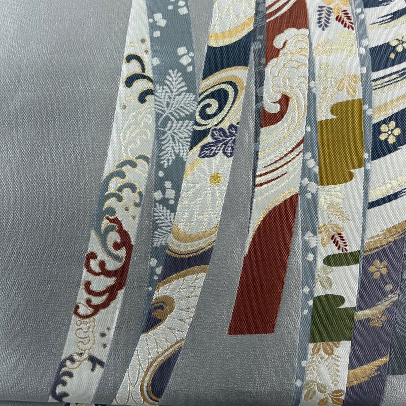【袋帯】 灰色系 青灰色 秀品 A 帯丈436cm以上 7990-9980 美品 二万以下