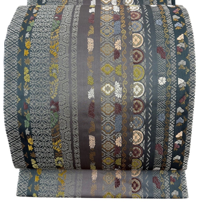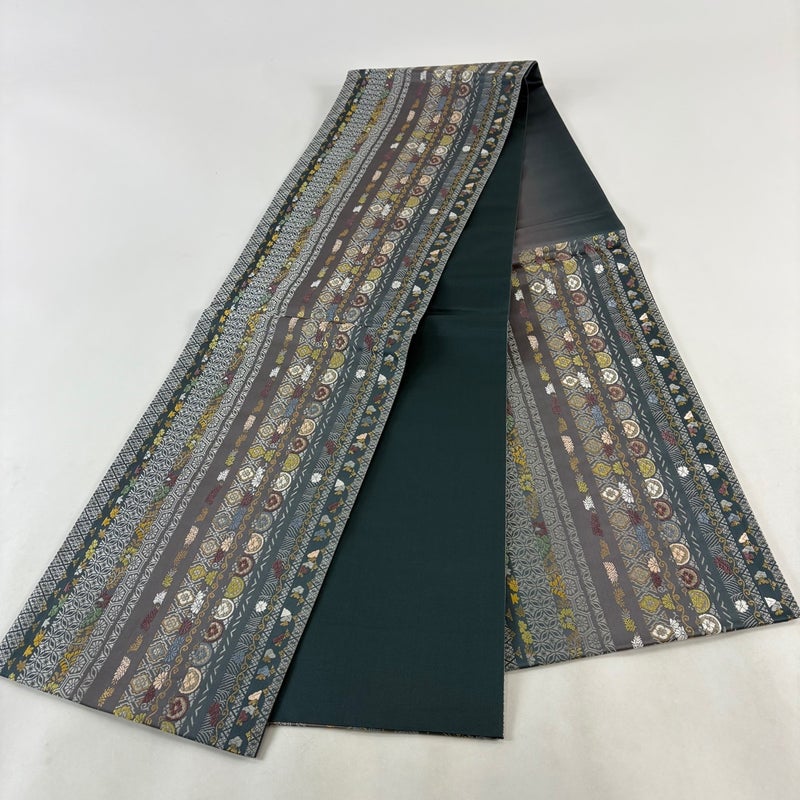【袋帯】 灰色系 灰緑 秀品 A 帯丈436cm以上 7990-9980 美品 二万以下