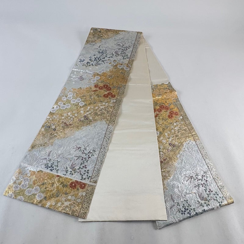 【袋帯】 金・銀系 銀色 秀品 A 帯丈426cm~435cm 7990-9980 美品 二万以下