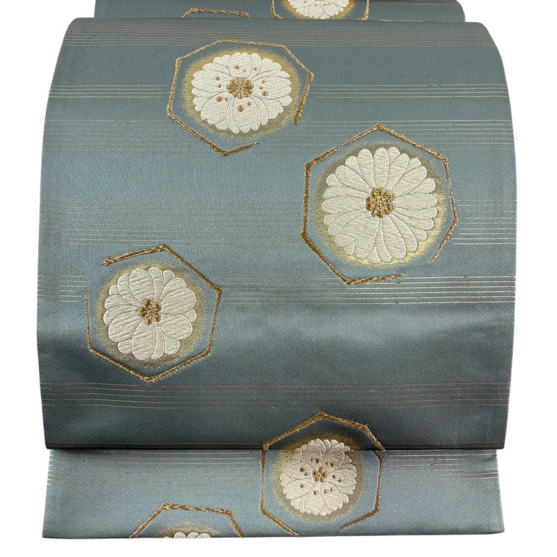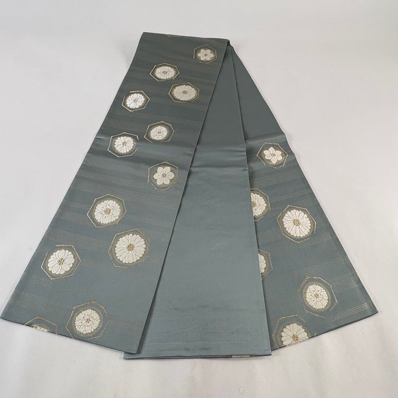 【袋帯】 灰色系 灰緑 秀品 A 帯丈426cm~435cm 7990-9980 美品 二万以下
