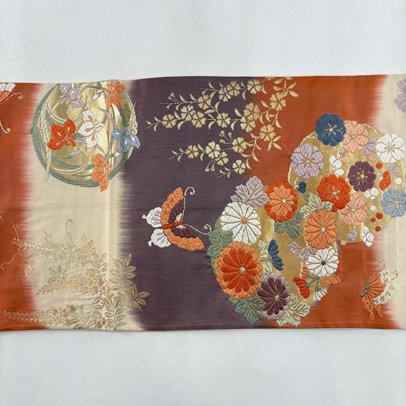 【着物ランク】秀品 【素材】正絹 【帯丈】約436cm 【帯幅】約31cm 【帯仕立て】仕立て上がり 【状態ランク】ランクC 【帯着用シーン】セミフォーマル(色無地・付下げ)