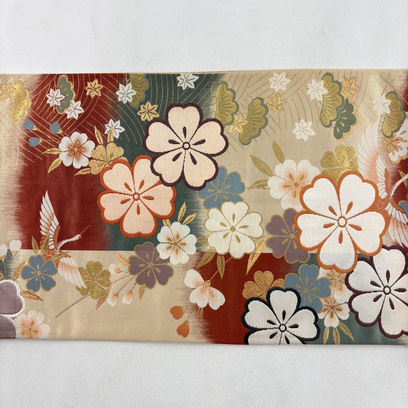 セミフォーマルでお使いいただける袋帯でございます。 見る人に重たい印象を感じさせない女性ならではの、気品豊かな一品です。 締め跡がございます。 リユース品としては目立った染み傷なく、状態の良いお品でございます。 ※なお、厳しく商品の状態確認を行っておりますが、記載の汚れ以外にも見落とし箇所がある可能性がある旨ご了承いただけますと幸いです。 沢山の商品の中からご覧いただき誠にありがとうございます。