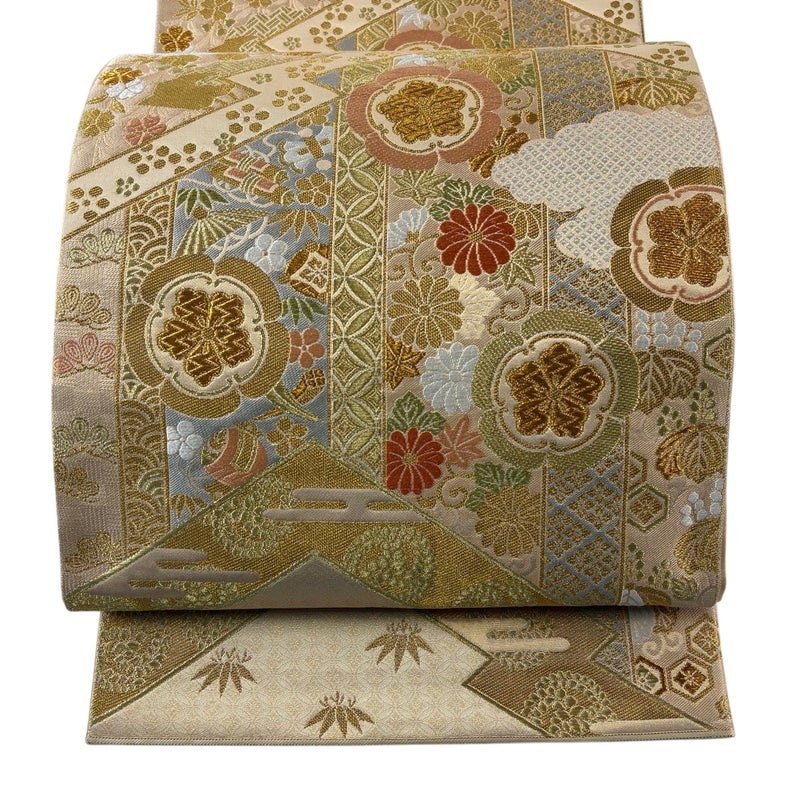 【袋帯】 白系 ベージュ 秀品 A 帯丈426cm~435cm 7990-9980 美品 二万以下