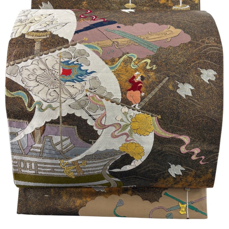 【袋帯】 茶系 焦茶色 名品 A 帯丈436cm以上 9990-29990 美品 二万以下