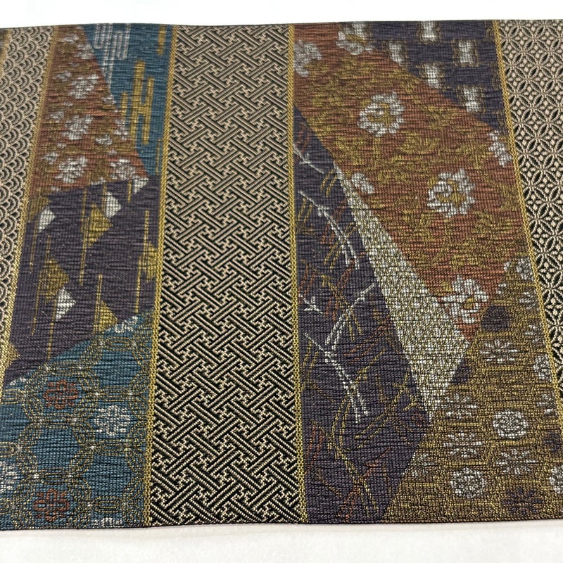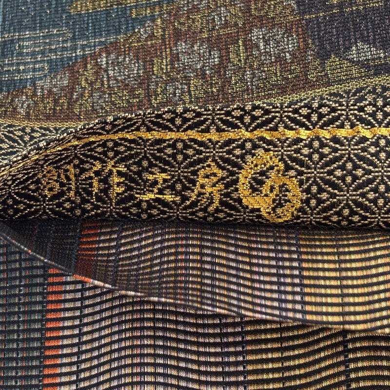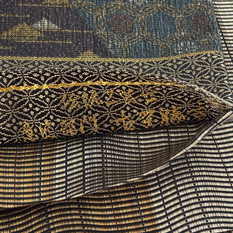 【美品】 袋帯 名品 落款あり 花唐草 有職文様 箔 黒 六通 正絹