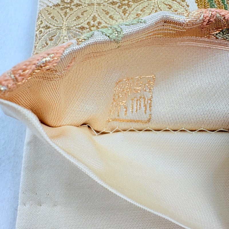 京都西陣、染と織の名門「じゅらく」謹製による作品でございます。 おめでたい席に相応しい意匠の袋帯でございます。 格式高いお席にもお使いいただけますので、お見逃しのないようお願いいたします。 締め跡がございます。 手先前柄間所々にシミ、お太鼓と手先前柄間など表地所々にシワがございます。 裏地所々にシミがございます。 リユース品としては良い状態で、まだまだご活用頂けると思われます。 ※なお、厳しく商品の状態確認を行っておりますが、記載の汚れ以外にも見落とし箇所がある可能性がある旨ご了承いただけますと幸いです。 沢山の商品の中からご覧いただき誠にありがとうございます。