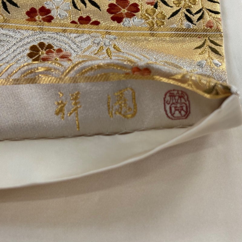 【着物ランク】名品 【素材】正絹 【帯丈】約440cm 【帯幅】約30.5cm 【帯仕立て】仕立て上がり 【状態ランク】ランクA 【作家名】祥園 【帯着用シーン】フォーマル(留袖・振袖・訪問着)