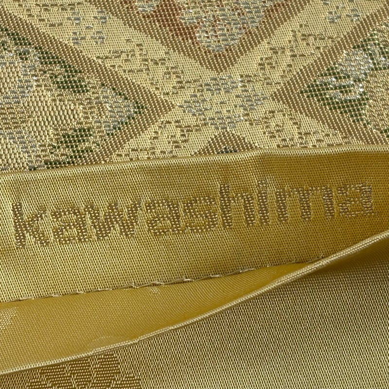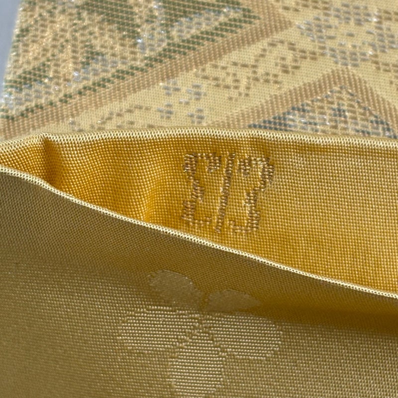 軍配マークと三本線が特徴の「川島織物」謹製の作品です。 セミフォーマルでお使いいただける袋帯でございます。 見る人に重たい印象を感じさせない女性ならではの、気品豊かな一品です。 締め跡がございます。 リユース品としては目立った染み傷なく、状態の良いお品でございます。 ※なお、厳しく商品の状態確認を行っておりますが、記載の汚れ以外にも見落とし箇所がある可能性がある旨ご了承いただけますと幸いです。 沢山の商品の中からご覧いただき誠にありがとうございます。