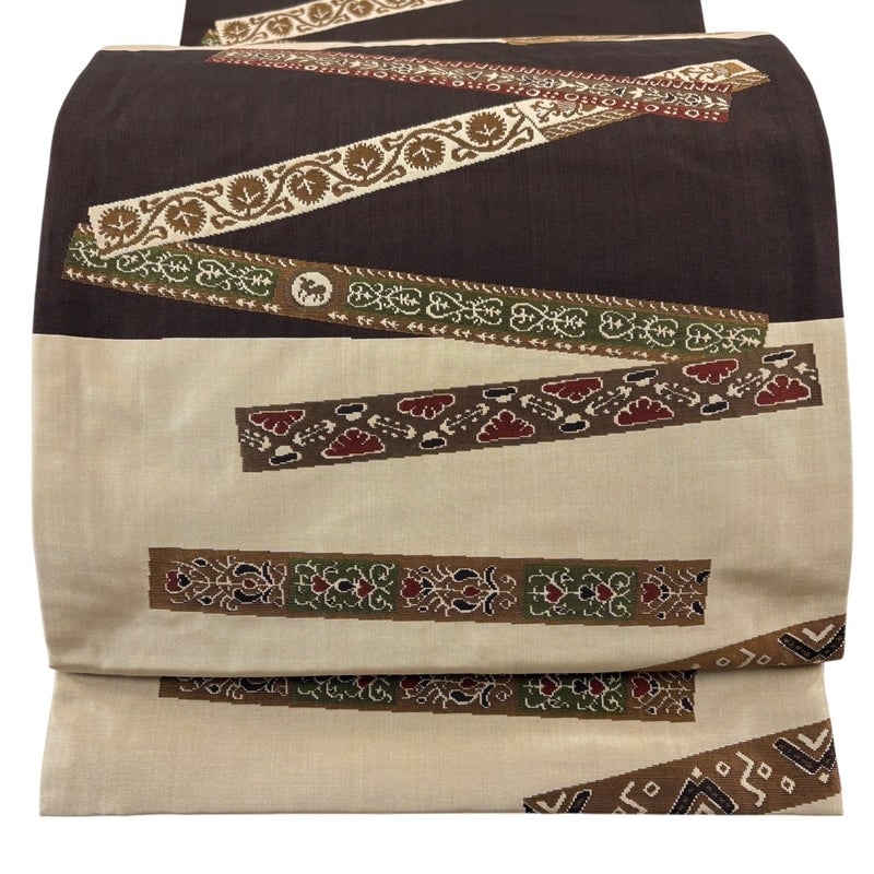 【袋帯】 茶系 焦茶色 名品 B 帯丈436cm以上 9990-29990 二万以下