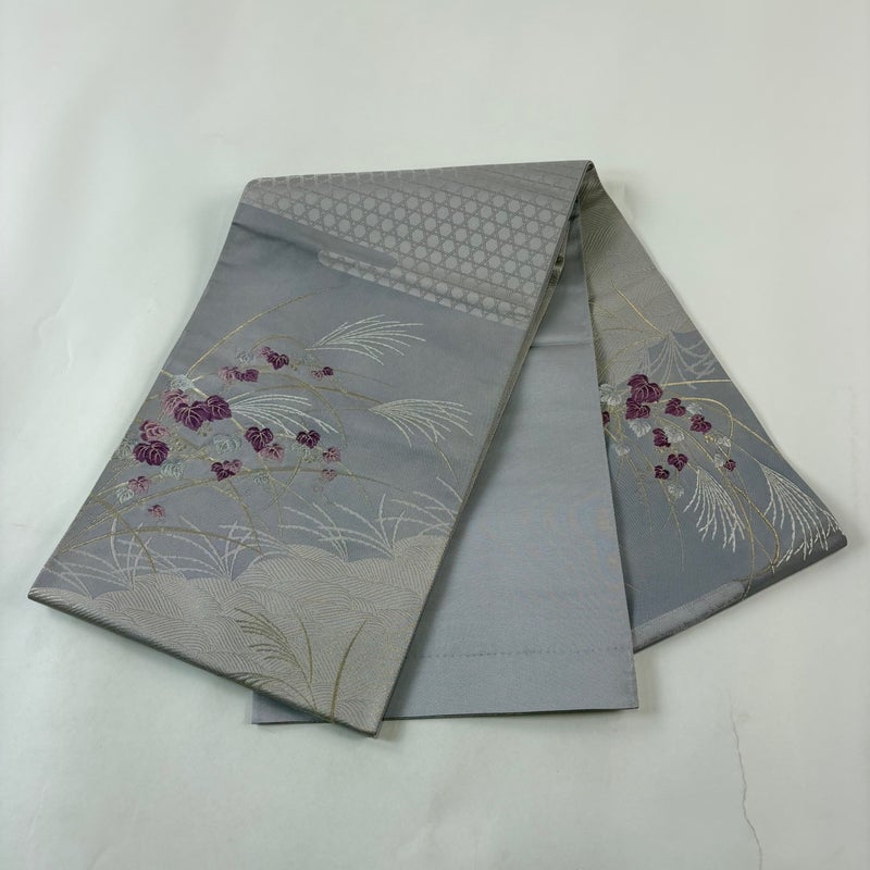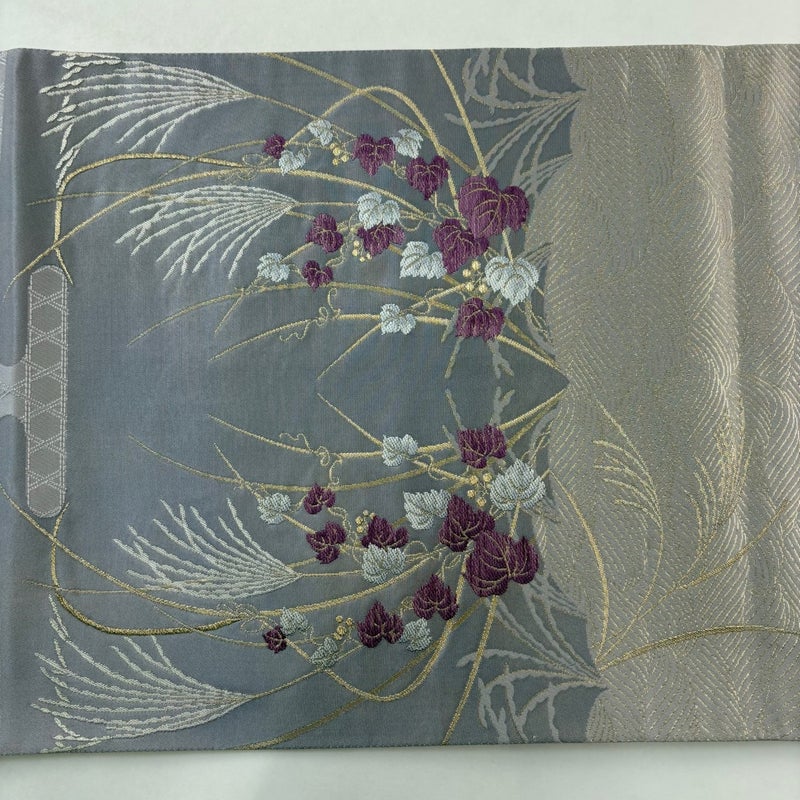 【着物ランク】名品 【素材】正絹 【帯丈】約430cm 【帯幅】約31.5cm 【帯仕立て】仕立て上がり 【状態ランク】ランクB 【作家名】帝王紫 【帯着用シーン】セミフォーマル(色無地・付下げ)
