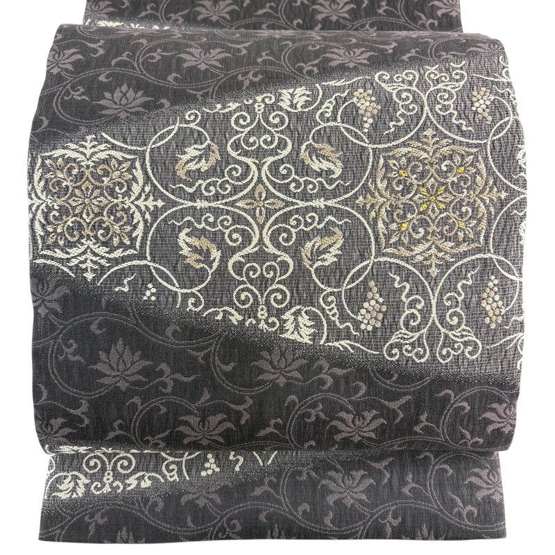 セミフォーマルでお使いいただける袋帯でございます。 見る人に重たい印象を感じさせない女性ならではの、気品豊かな一品です。 リユース品としては目立った染み傷なく、状態の良いお品でございます。 ※なお、厳しく商品の状態確認を行っておりますが、記載の汚れ以外にも見落とし箇所がある可能性がある旨ご了承いただけますと幸いです。 沢山の商品の中からご覧いただき誠にありがとうございます。