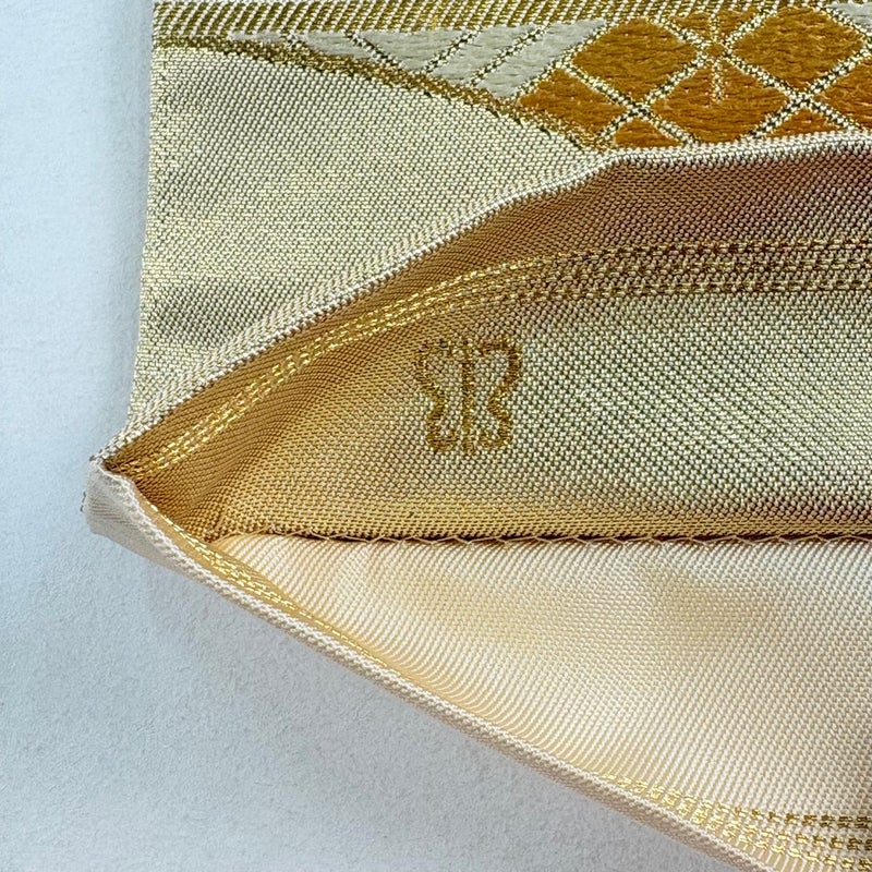 軍配マークと三本線が特徴の「川島織物」謹製の作品です。 おめでたい席に相応しい意匠の袋帯でございます。 格式高いお席にもお使いいただけますので、お見逃しのないようお願いいたします。 締め跡がございます。 リユース品としては目立った染み傷なく、状態の良いお品でございます。 ※なお、厳しく商品の状態確認を行っておりますが、記載の汚れ以外にも見落とし箇所がある可能性がある旨ご了承いただけますと幸いです。 沢山の商品の中からご覧いただき誠にありがとうございます。