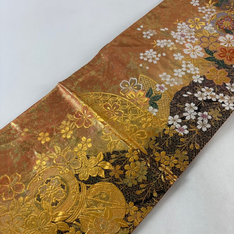 【着物ランク】秀品 【素材】正絹 【帯丈】約436cm 【帯幅】約31cm 【帯仕立て】仕立て上がり 【状態ランク】ランクB 【帯着用シーン】フォーマル(留袖・振袖・訪問着)