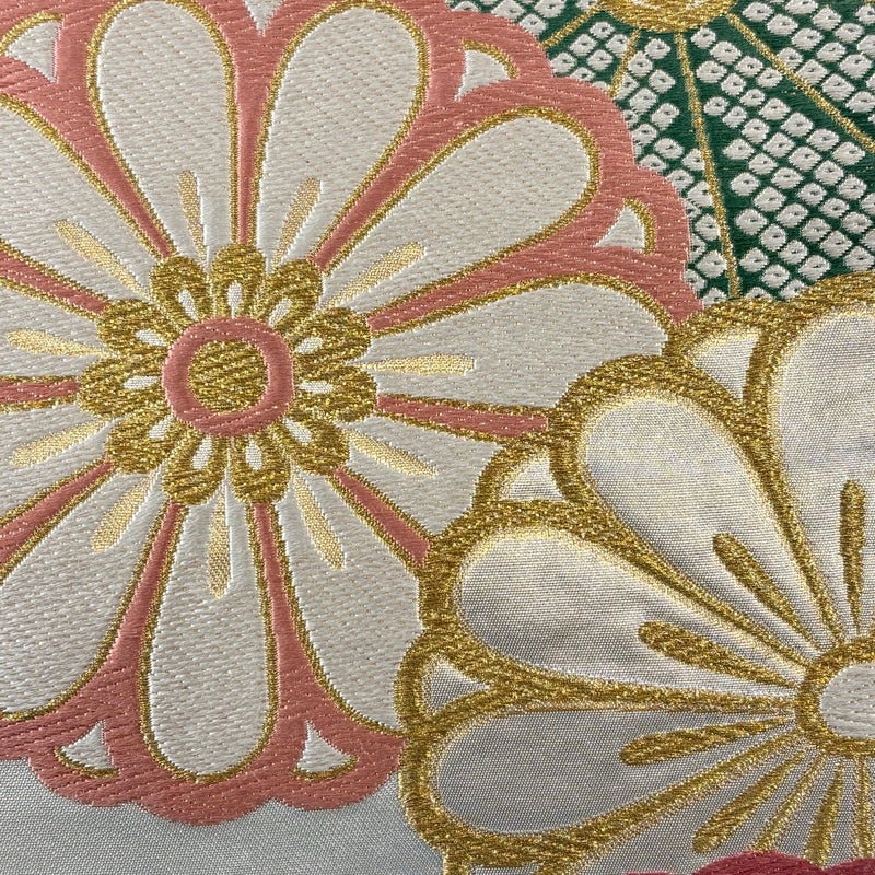 セミフォーマルでお使いいただける袋帯でございます。 見る人に重たい印象を感じさせない女性ならではの、気品豊かな一品です。 帯芯が入っておりません。 締め跡がございます。 お太鼓垂先間に金糸のほつれがございます。 リユース品としては目立った染み傷なく、状態の良いお品でございます。 ※なお、厳しく商品の状態確認を行っておりますが、記載の汚れ以外にも見落とし箇所がある可能性がある旨ご了承いただけますと幸いです。 沢山の商品の中からご覧いただき誠にありがとうございます。