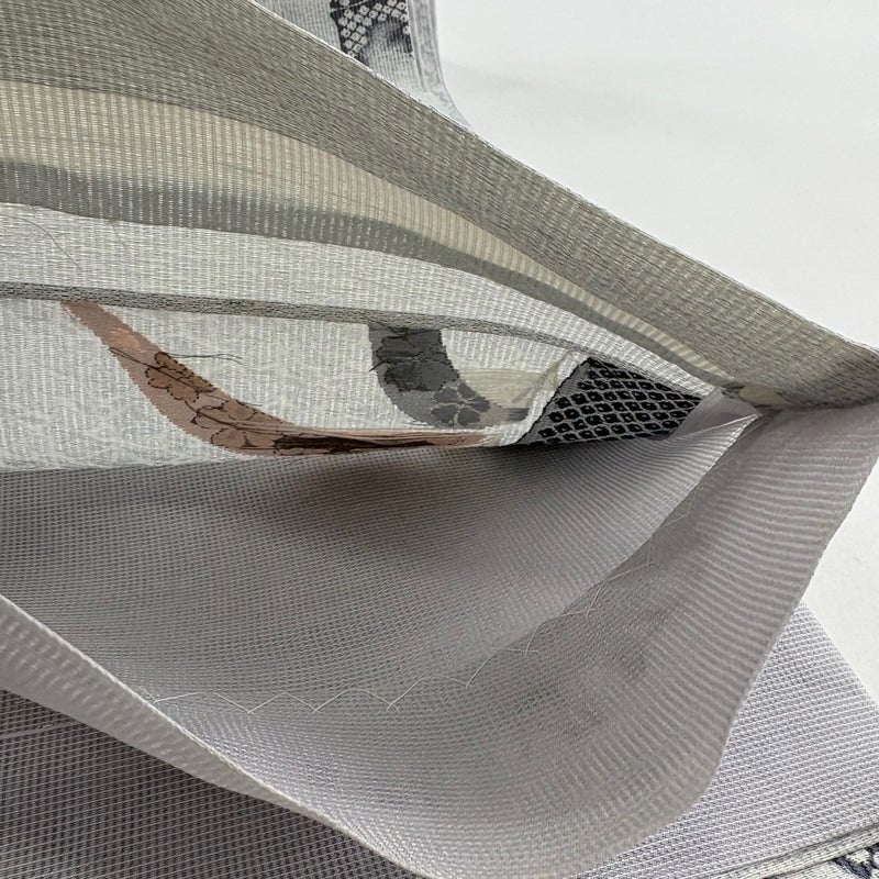 夏帯でございます。 普段使いでお使いいただける袋帯でございます。 カジュアルな装いに合わせてお使いください。 帯芯が入っておりません。 締め跡がございます。 表地所々に薄ヤケがございます。 リユース品としては目立った染み傷なく、状態の良いお品でございます。 ※なお、厳しく商品の状態確認を行っておりますが、記載の汚れ以外にも見落とし箇所がある可能性がある旨ご了承いただけますと幸いです。 沢山の商品の中からご覧いただき誠にありがとうございます。