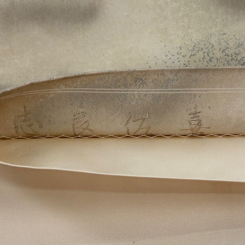 セミフォーマルでお使いいただける袋帯でございます。 見る人に重たい印象を感じさせない女性ならではの、気品豊かな一品です。 締め跡がございます。 締め跡沿いに汚れがございます。 リユース品としては目立った染み傷なく、状態の良いお品でございます。 ※なお、厳しく商品の状態確認を行っておりますが、記載の汚れ以外にも見落とし箇所がある可能性がある旨ご了承いただけますと幸いです。 沢山の商品の中からご覧いただき誠にありがとうございます。