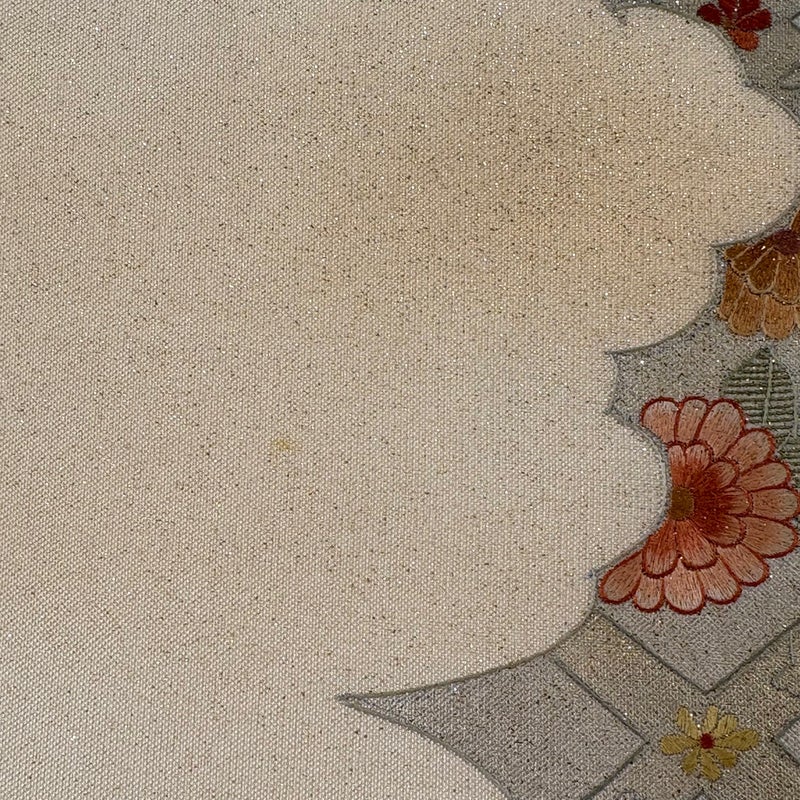 セミフォーマルでお使いいただける袋帯でございます。 見る人に重たい印象を感じさせない女性ならではの、気品豊かな一品です。 お太鼓に薄いシミがございます。 リユース品としては目立った染み傷なく、状態の良いお品でございます。 ※なお、厳しく商品の状態確認を行っておりますが、記載の汚れ以外にも見落とし箇所がある可能性がある旨ご了承いただけますと幸いです。 沢山の商品の中からご覧いただき誠にありがとうございます。