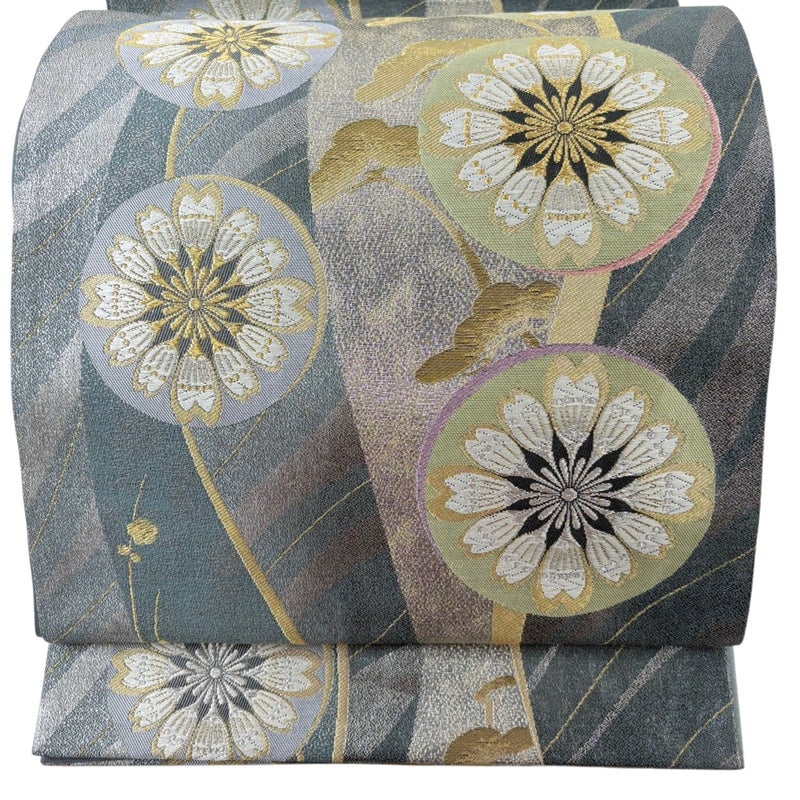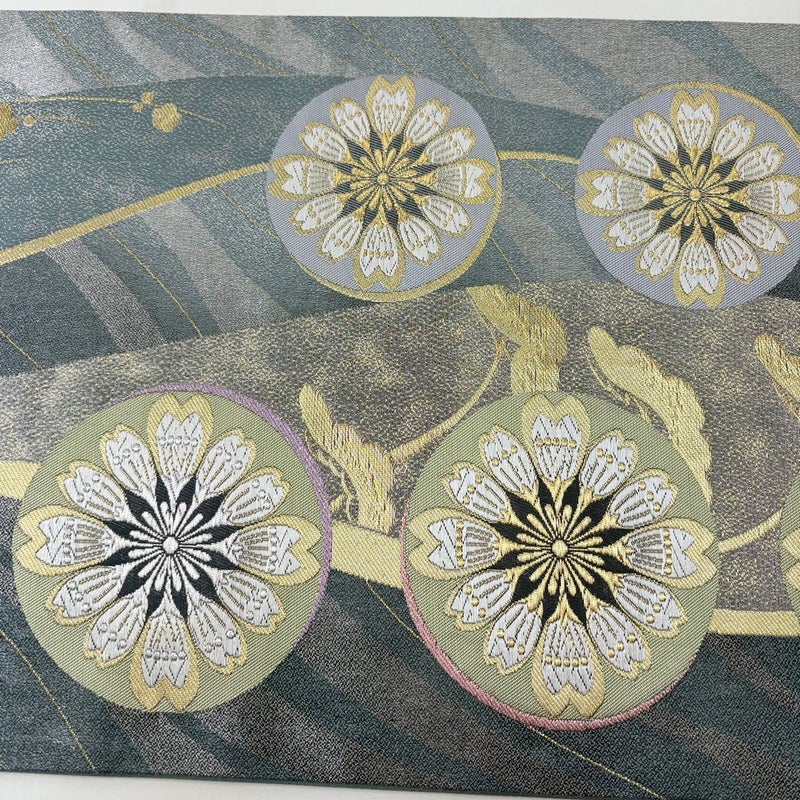 【袋帯】 灰色系 灰緑 秀品 A 帯丈436cm以上 7990-9980 美品 二万以下
