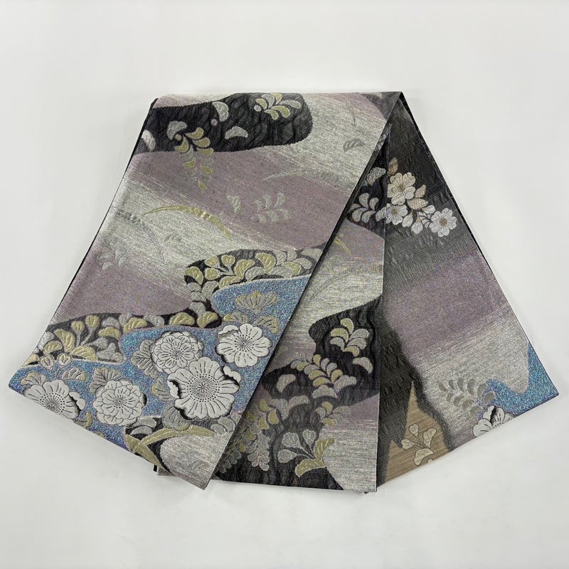 【袋帯】 灰色系 灰紫 秀品 A 帯丈436cm以上 7990-9980 美品 二万以下