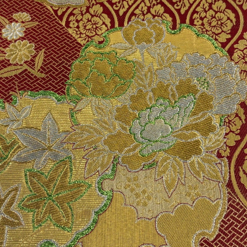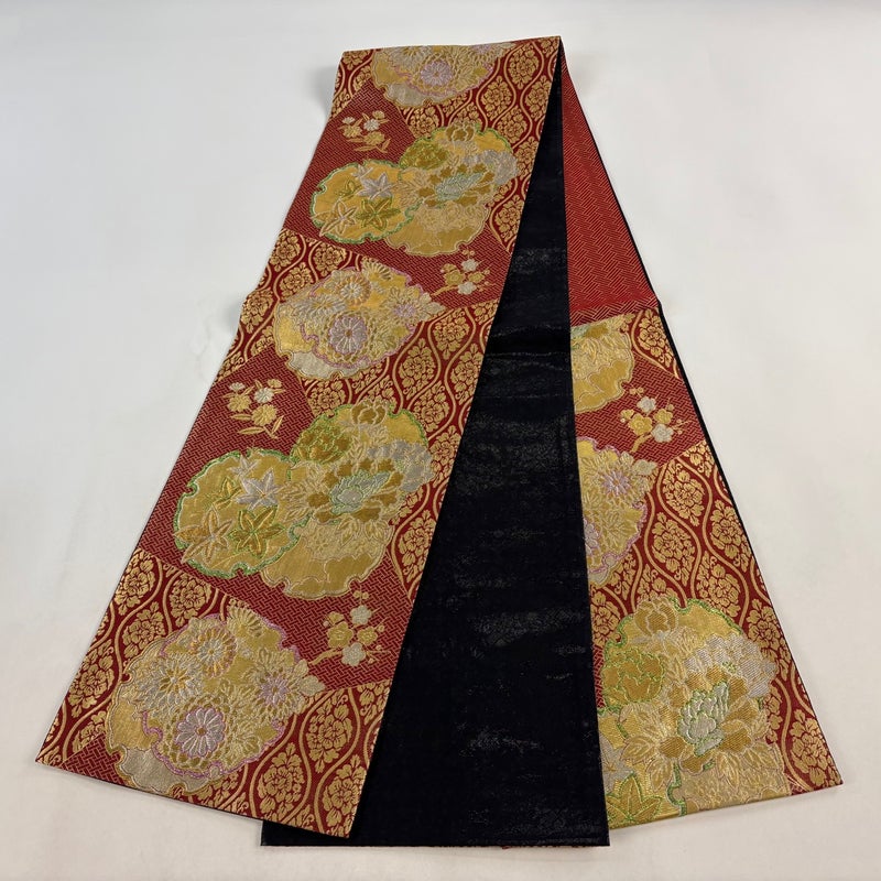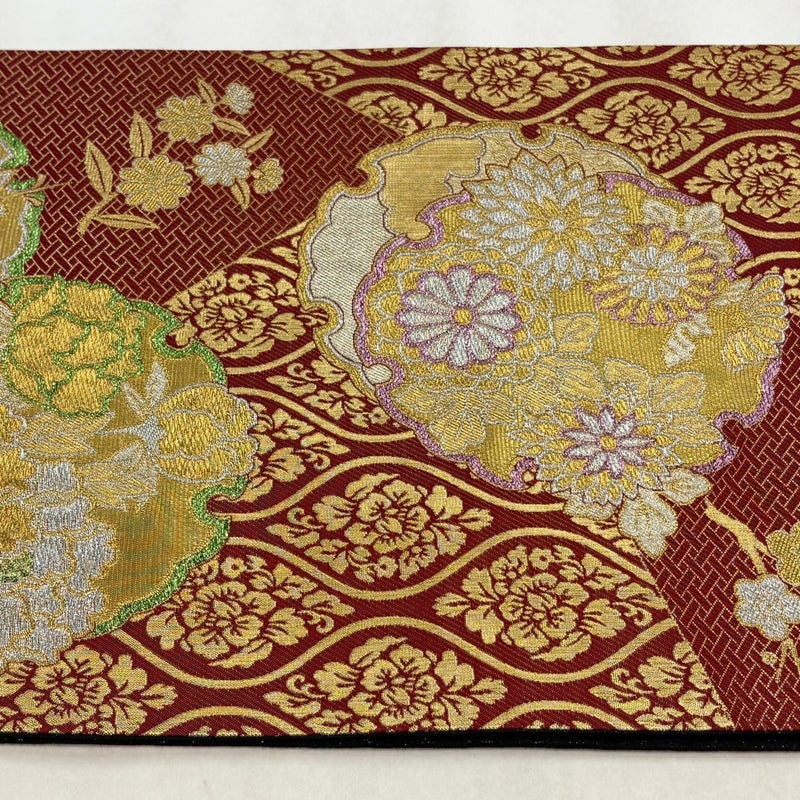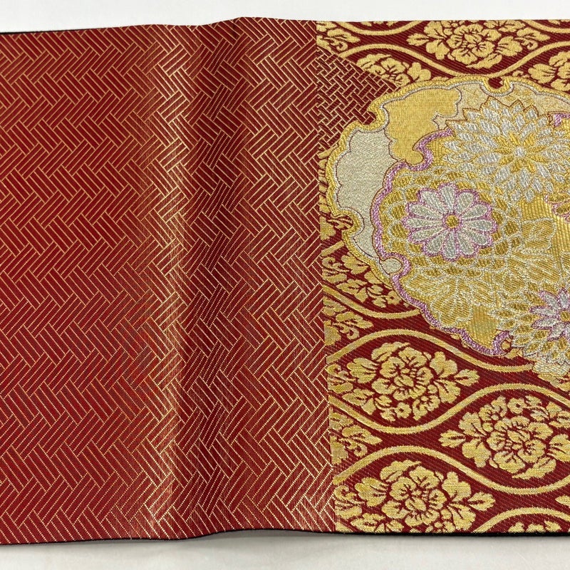 【袋帯】 赤系 えんじ色 秀品 A 帯丈426cm~435cm 7990-9980 美品 二万以下