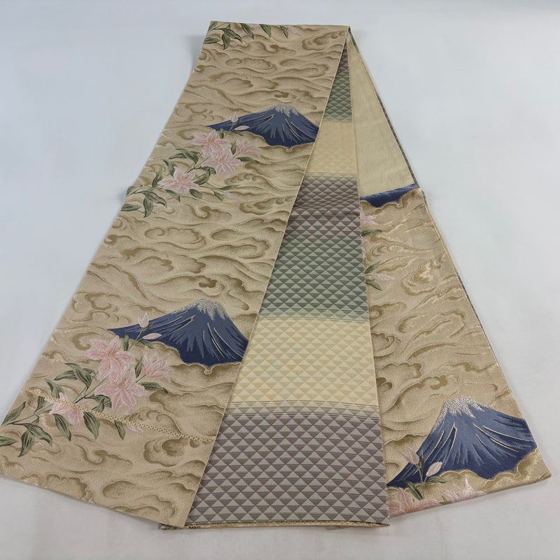 【袋帯】 白系 ベージュ 秀品 A 帯丈426cm~435cm 7990-9980 美品 二万以下