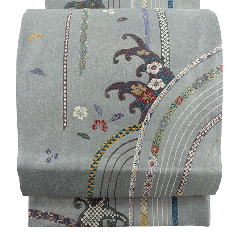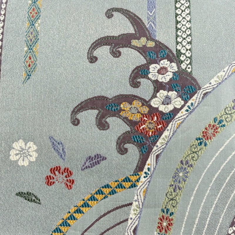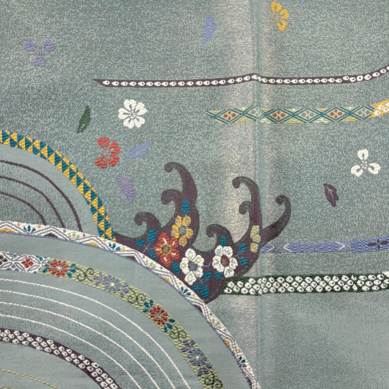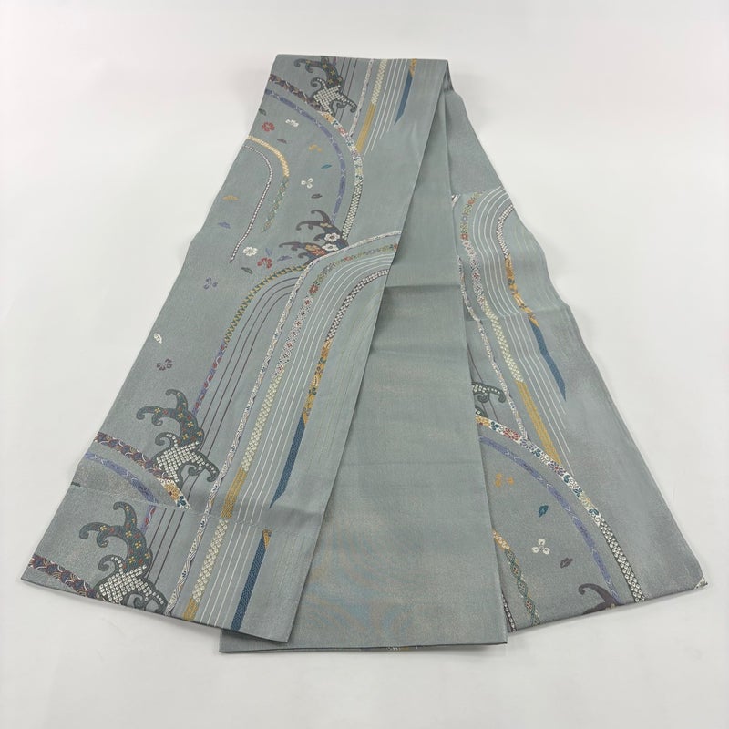 【袋帯】 灰色系 灰緑 名品 A 帯丈436cm以上 9990-29990 美品 二万以下