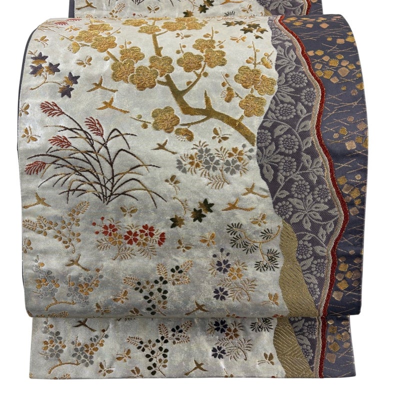 【袋帯】 金・銀系 銀色 名品 A 帯丈436cm以上 9990-29990 美品 二万以下