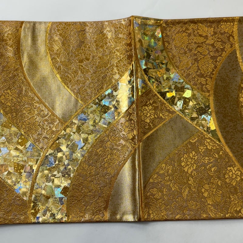 角度によって巧みに表情を変え反射する箔加工を得意とする堀省平の作品でございます。 おめでたい席に相応しい意匠の袋帯でございます。 格式高いお席にもお使いいただけますので、お見逃しのないようお願いいたします。 帯芯が入っておりません。 垂先にシワがございます。 リユース品としては目立った染み傷なく、状態の良いお品でございます。 ※なお、厳しく商品の状態確認を行っておりますが、記載の汚れ以外にも見落とし箇所がある可能性がある旨ご了承いただけますと幸いです。 沢山の商品の中からご覧いただき誠にありがとうございます。