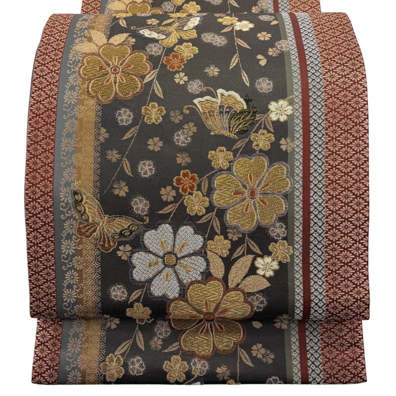 【袋帯】 茶系 焦茶色 秀品 A 帯丈426cm~435cm 7990-9980 美品 二万以下