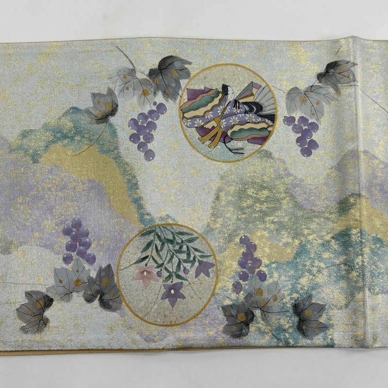 セミフォーマルでお使いいただける袋帯でございます。 見る人に重たい印象を感じさせない女性ならではの、気品豊かな一品です。 お太鼓柄部分に小さなシミがございます。 リユース品としては目立った染み傷なく、状態の良いお品でございます。 ※なお、厳しく商品の状態確認を行っておりますが、記載の汚れ以外にも見落とし箇所がある可能性がある旨ご了承いただけますと幸いです。 沢山の商品の中からご覧いただき誠にありがとうございます。
